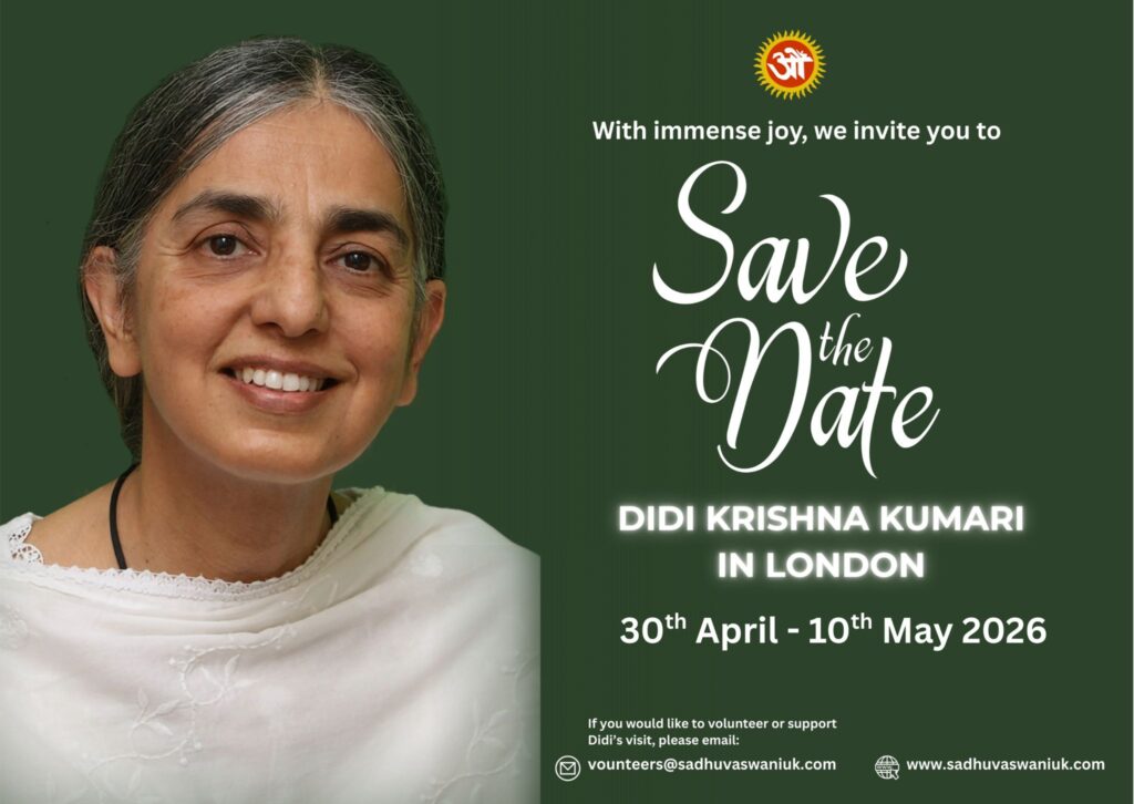 Sadhu Vaswani Centre UK lovingly announces the blessed visit of Didi Krishna Kumari to London.